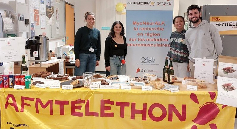 L’équipe « Myologie cellulaire et Pathologies » dirigée par Isabelle Marty s’est une nouvelle fois mobilisée pour le Téléthon. Pour cette 4e édition au GIN, un stand gourmand tenu par ses membres a pris place dans le hall de l’institut, attirant tout au long de la journée personnels, chercheurs, étudiants et visiteurs souhaitant apporter leur soutien.
